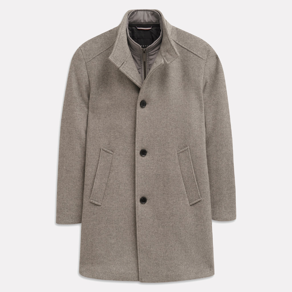 With this elegant stand-up collar coat from bugatti, you're perfectly equipped for cold days. Thanks to the Flexcity Stretch fabric, you'll enjoy maximum comfort and optimal freedom of movement. A special highlight is the practical removable faux vest insert, which allows you to adjust the coat to your individual temperature. The high-quality wool blend with polyester content keeps you pleasantly warm while always looking stylish. The combination of a zipper and button placket offers you additional protection from cold and wind. Practical front pockets and an inside pocket provide ample storage for your essentials. The modern fit cut emphasizes your masculine silhouette and makes this coat the ideal choice for business and leisure.