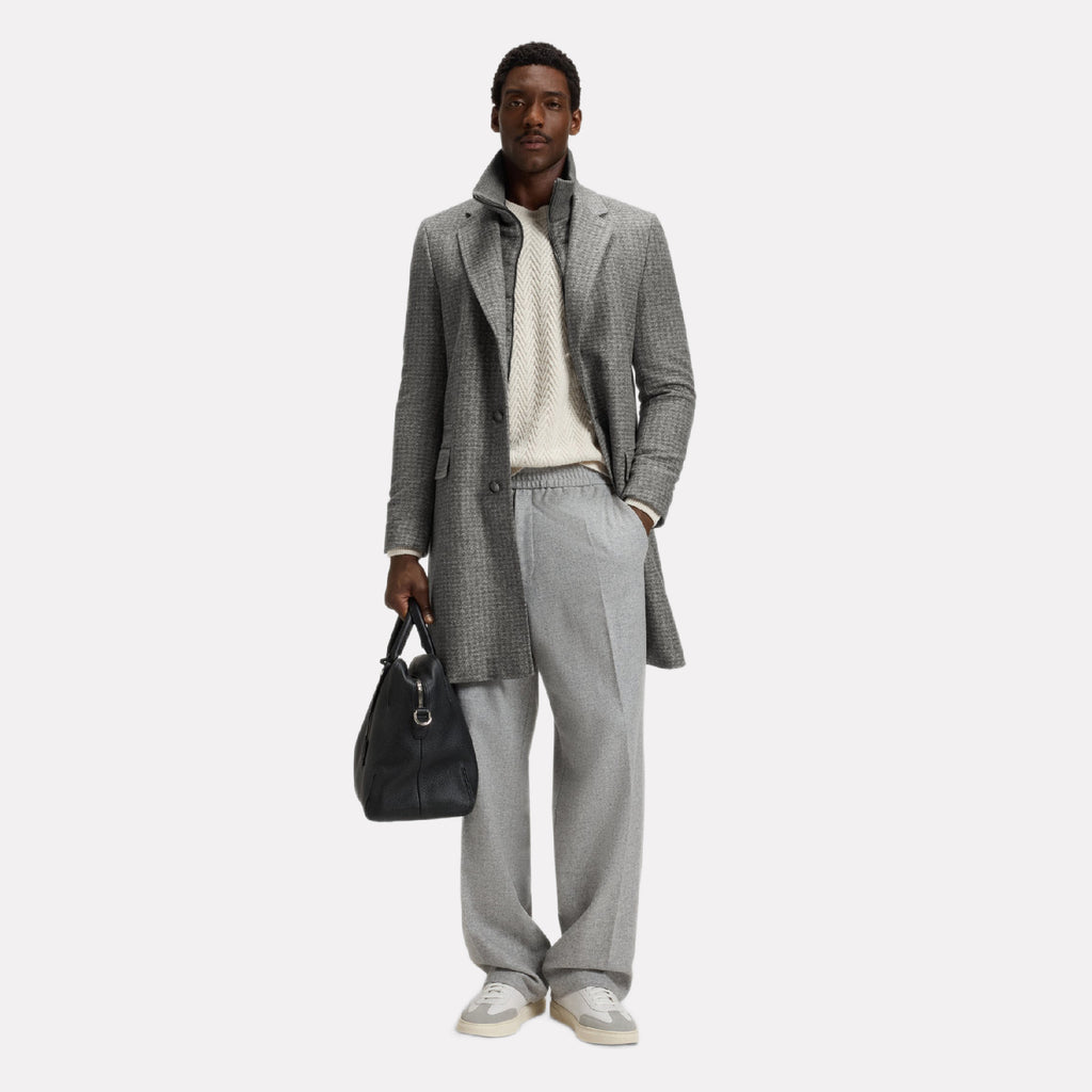 Elevate your outerwear game with this sophisticated BOSS Menswear coat that's as practical as it is polished. Crafted from a premium virgin wool blend, this dark blue stunner delivers warmth without the bulk, making it your go-to layer for unpredictable weather. The subtle pattern adds visual interest while the slight padding and stretch fabric keep you comfortable whether you're dashing between meetings or weekend adventures. Love flexibility? The detachable zip-up inner lining means you can customize your warmth level on the fly—wear it as a standalone coat or add the lining when temperatures drop. Versatile, refined, and ready for whatever the season throws your way, this is the coat that actually earns its closet real estate.