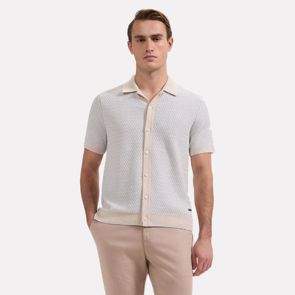 BUGATCHI Short Sleeve Full Button Shirt Sweater / Almond