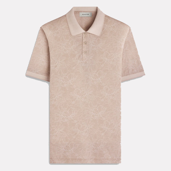 BUGATCHI Short Sleeve Three Button Polo / Beige