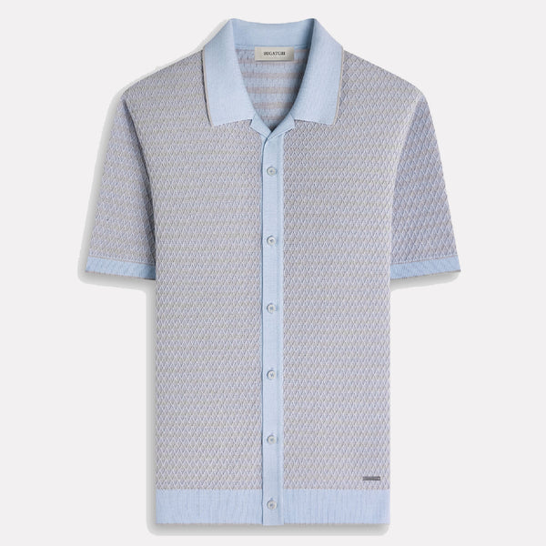 BUGATCHI Short Sleeve Full Button Shirt Sweater / Hazy Blue