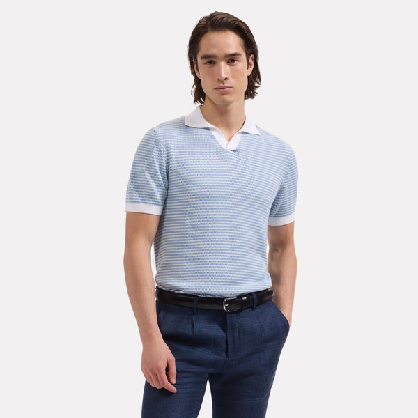 BUGATCHI Short Sleeve Three Button Polo / Sky