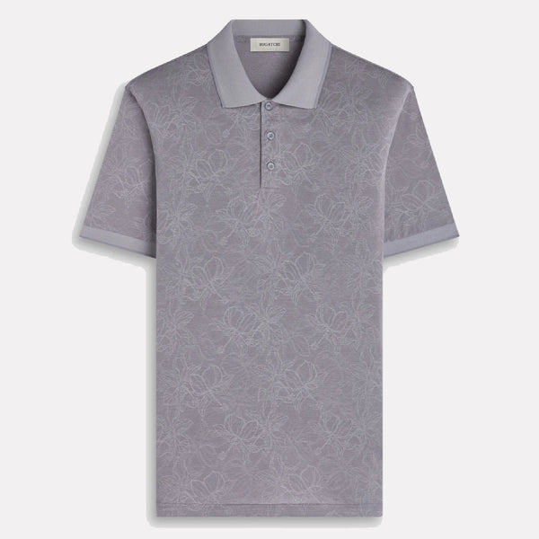 BUGATCHI Short Sleeve Three Button Polo / Zinc