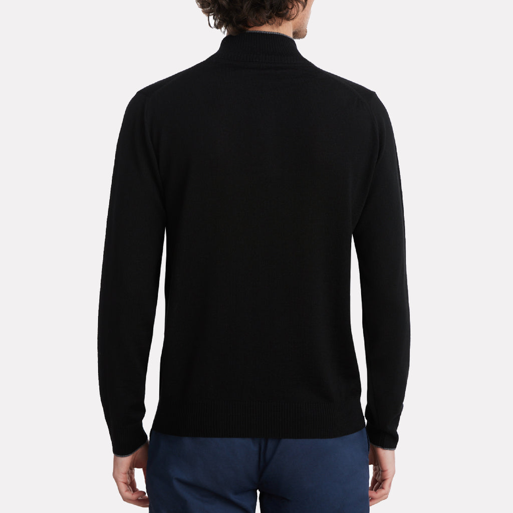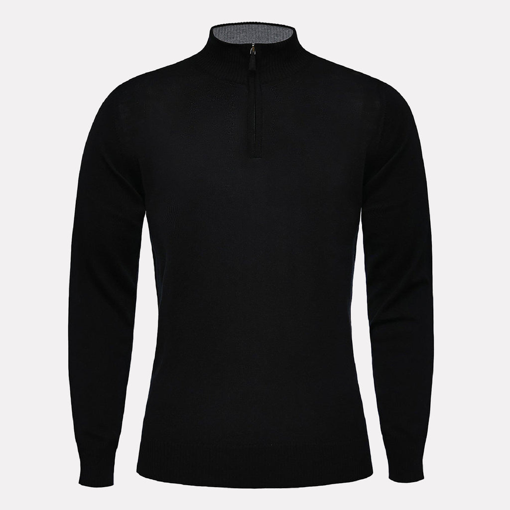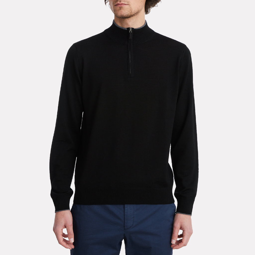A regular fit cut and proportions that fit closely to the body, this sweater exudes elegance with darker colour details on the ribbed half-zipper, cuffs and bottom edge. A zip stand collar ensures that this piece is the perfect layering companion for a timeless, seasonless update to your look.