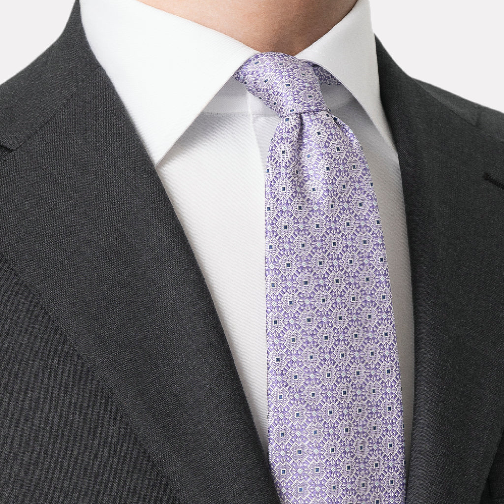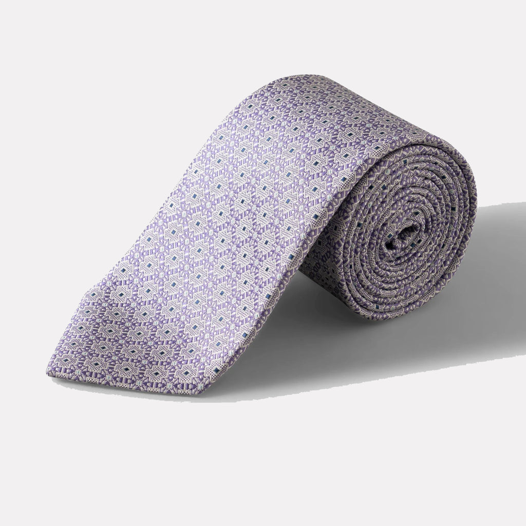 Add a touch of European elegance to your formal wardrobe with this captivating purple tie. Constructed from authentic Italian silk, the intricate medallion weave showcases masterful jacquard craftsmanship that brings dimension and visual richness to every wear. The fabric's natural luster plays beautifully with light, creating that polished look that feels effortless. Versatile enough to complement your entire dress shirt collection, this is the kind of tie that proves quality accessories speak louder than words ever could.