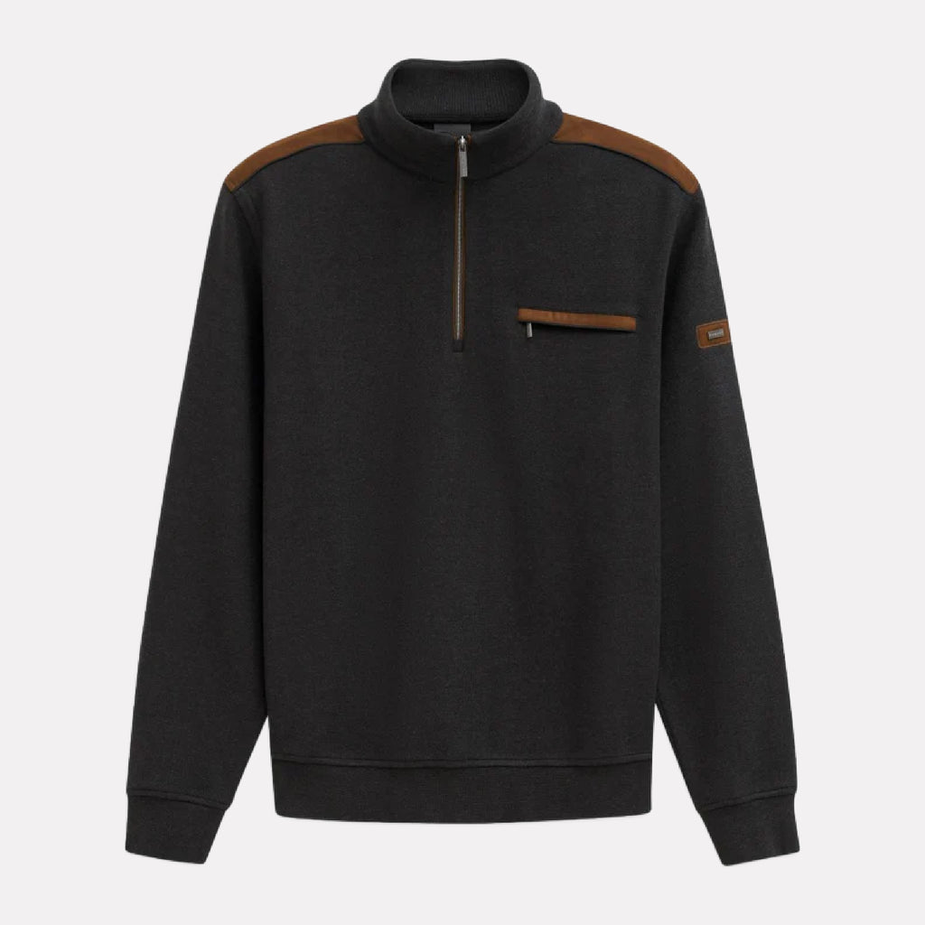 Bugatti Long Sleeve Quarter Zip Knit Sweater / Charcoal