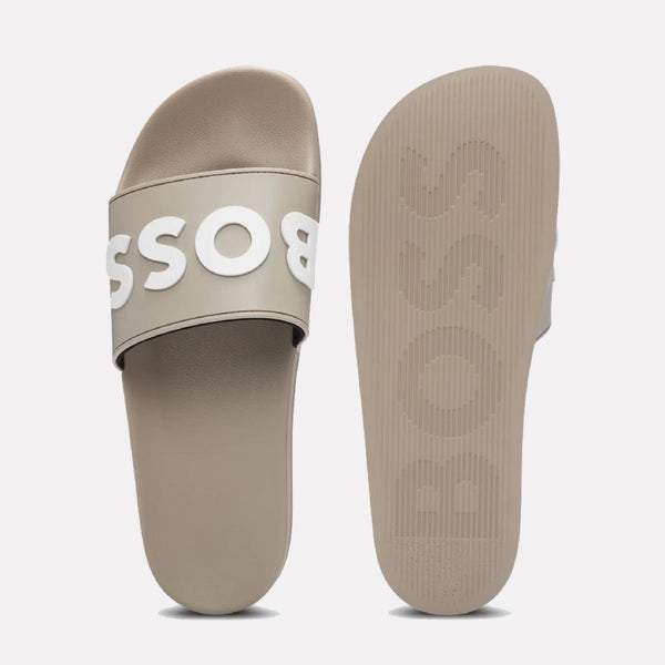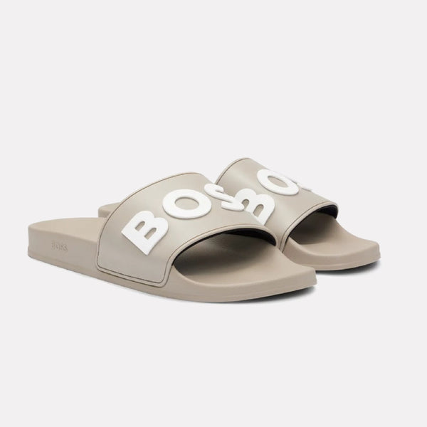 The BOSS Italian-Made Kirk Slides with Raised Logo / Light Pastel Grey