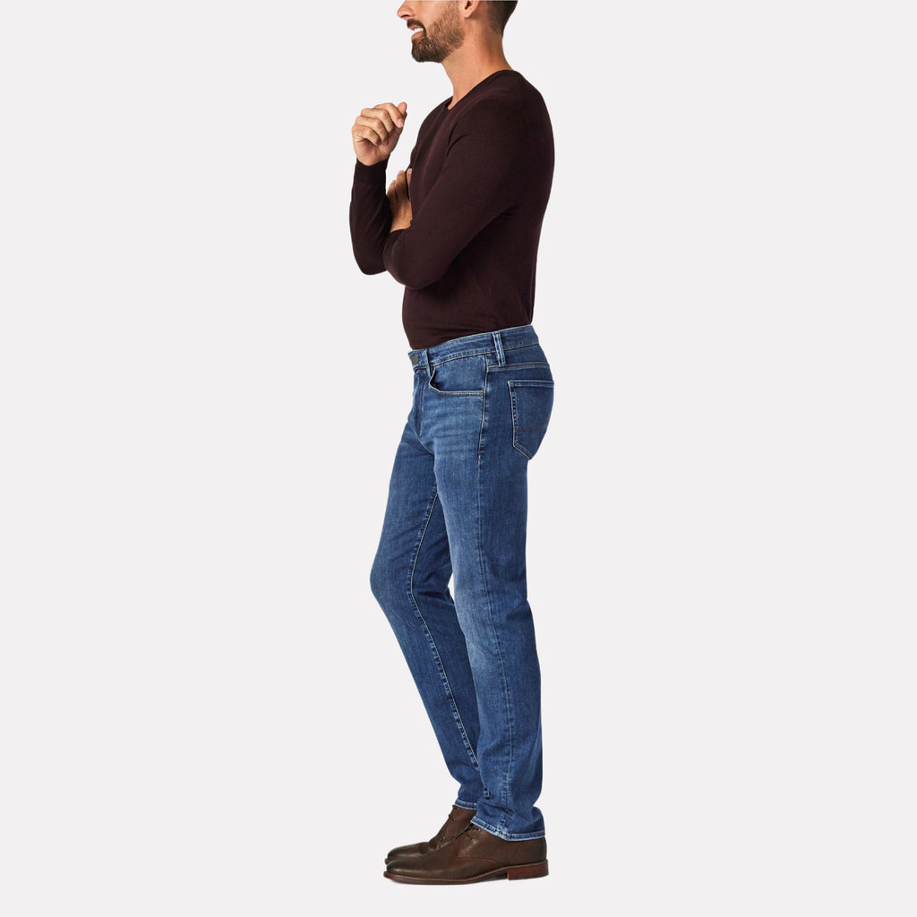The rich mid indigo wash and texture of premium denim, with superior flexibility and softness. Cut from fabric with a higher proportion of Viscose and cotton, these are the softest jean you’ve ever worn. Slimming and powerful, this pair has a tapered fit with just the right amount of room.