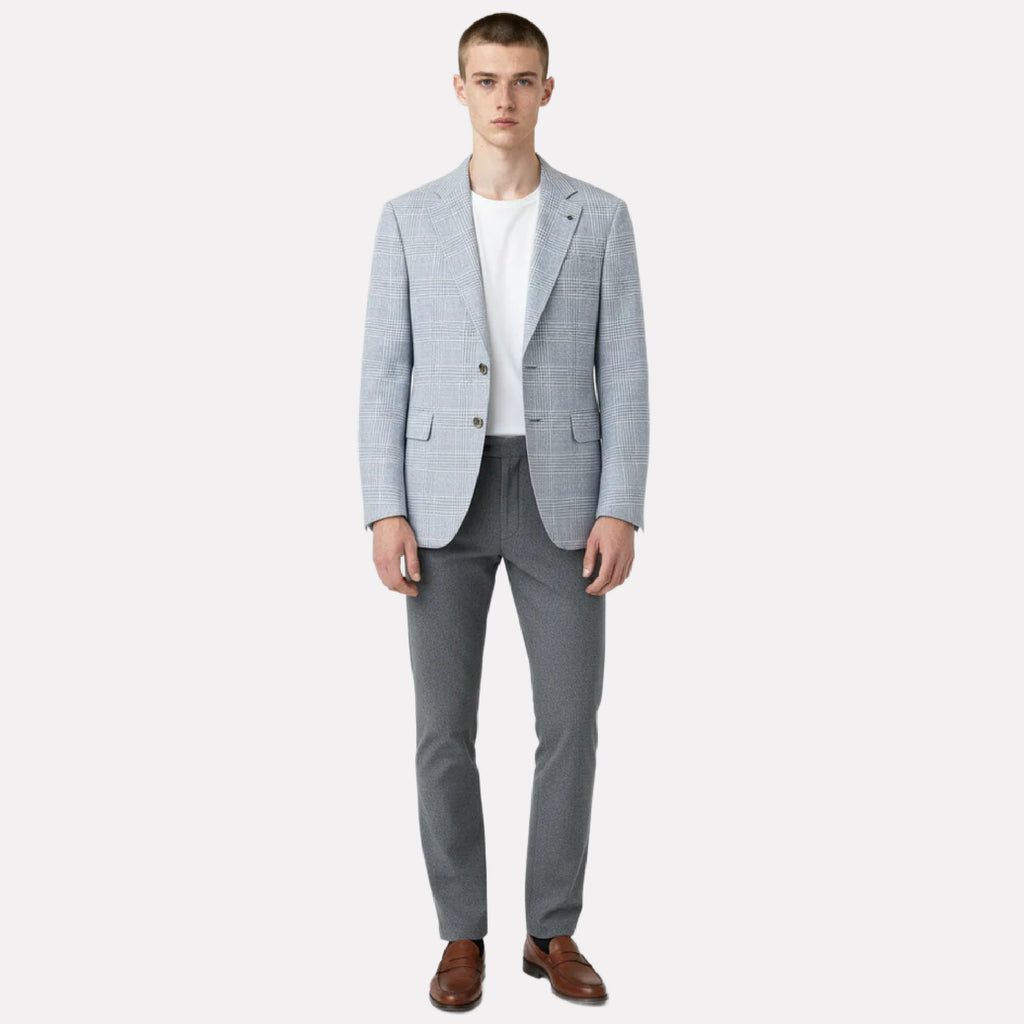 This isn't your average blazer—it's a masterclass in fabric engineering. The Midland jacket combines wool, silk, and linen in a subtle light blue check that whispers rather than shouts. Woven by Loro Piana's Italian mills, it's got that perfect balance of structure and breathability that makes summer dressing feel effortless. The tonal plaid pattern keeps things sophisticated while the featherweight construction ensures you'll actually want to wear it when the temperature climbs. Pure textile poetry for the discerning dresser.