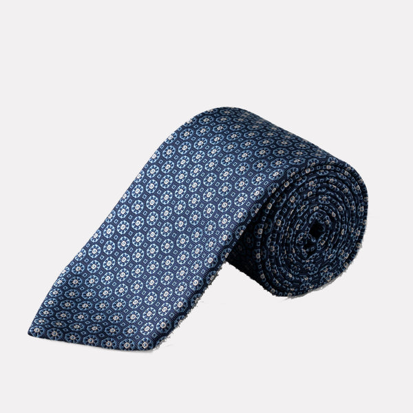 Medallion Woven Silk Tie / Navy Blue