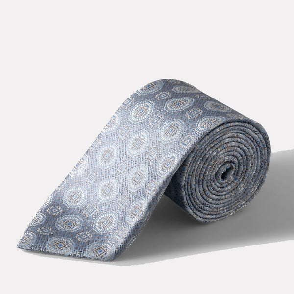 Medallion Woven Silk Tie / Light Blue