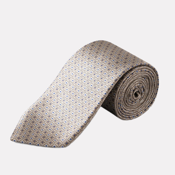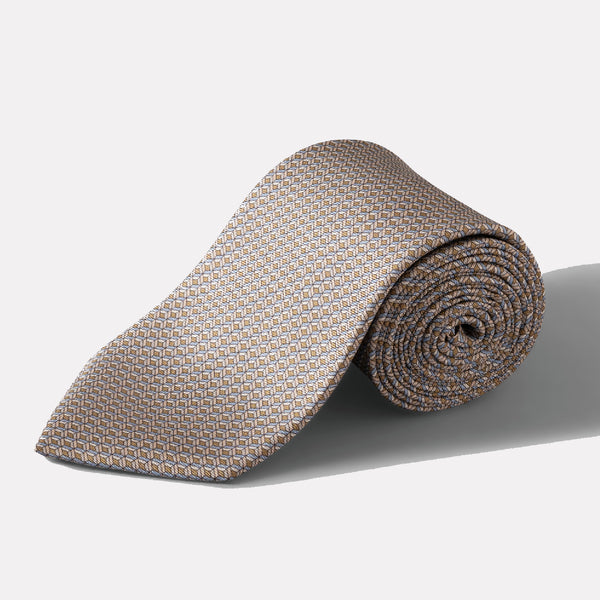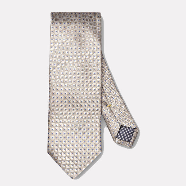 Geometrical Print Silk Tie / Beige