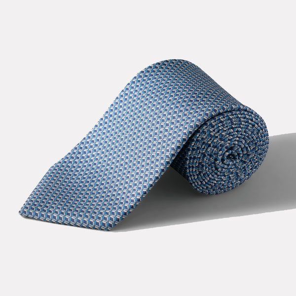 Geometrical Print Silk Tie / Blue