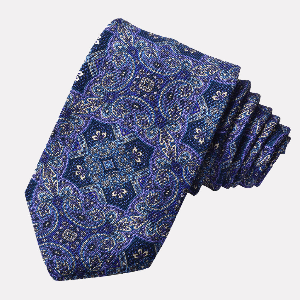 100% Italian Silk, Printed Panama Floral Mandala Tie / Purple-Lavender