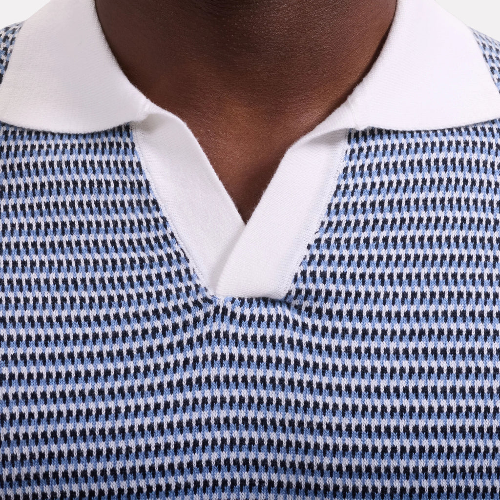 Crafted from a luxurious cotton-modal mix, this short-sleeve sweater brings the charm with its distinctive Johnny collar and understated micro jacquard weave that keeps things visually dynamic. The contrasting ribbed edges give it that sharp, put-together vibe, making it the kind of piece that works just as well at weekend brunch as it does dressed up for something special.