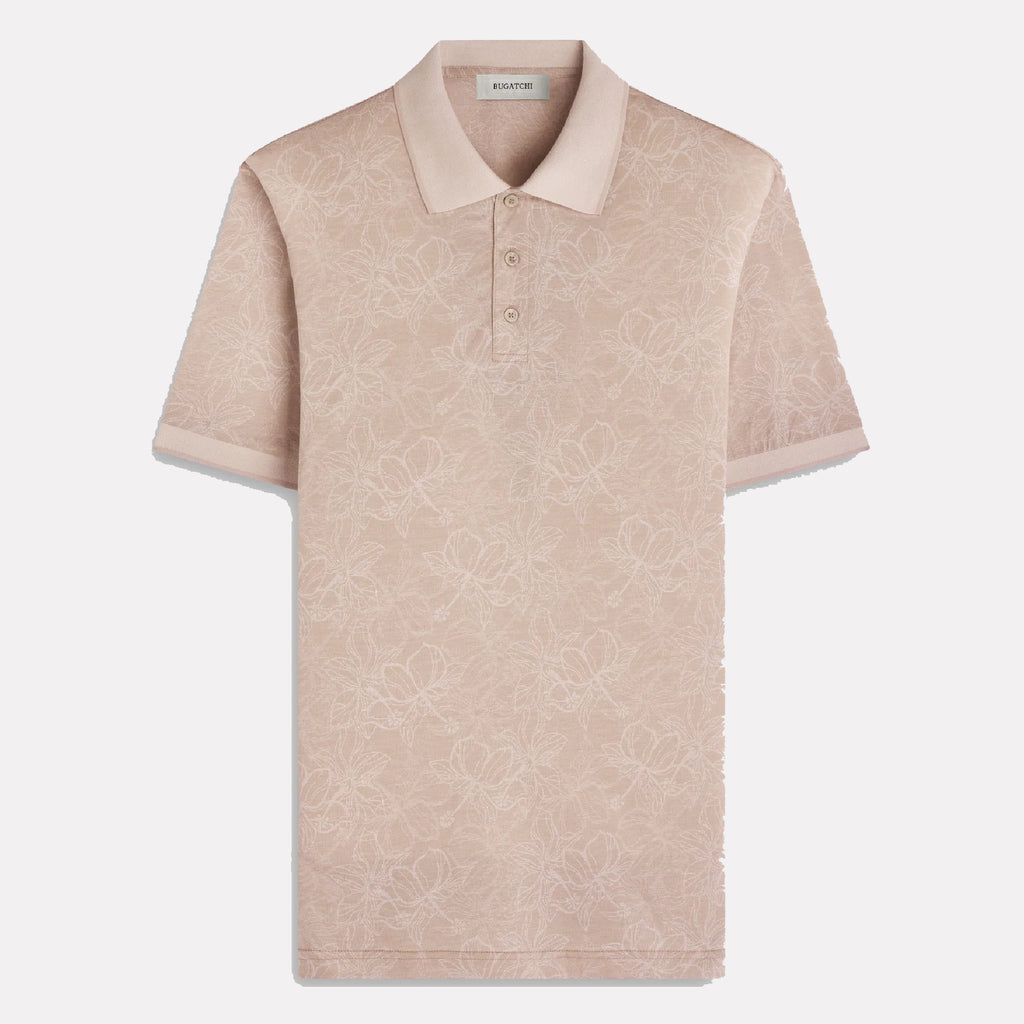 BUGATCHI Short Sleeve Three Button Polo / Desert
