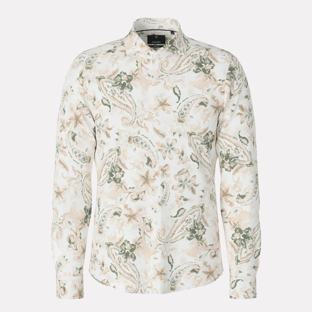 Features an artistic floral‑paisley print in soft, muted tones for a modern yet timeless aesthetic. Classic pointed collar and full button‑front closure for a clean, tailored look. Long sleeves with a smooth finish, offering styling flexibility—roll them for a relaxed feel or keep them crisp for a more formal appearance. JOOP!’s signature attention to detail ensures a premium, elevated finish.