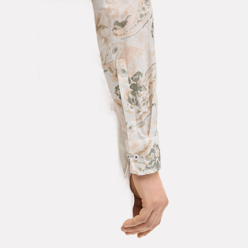 This JOOP! long‑sleeve shirt blends natural comfort with refined artistry, crafted from a breathable cotton–linen fabric that feels lightweight, soft, and effortlessly polished. Its intricate floral‑paisley pattern brings a sophisticated visual texture, offering a standout look that remains elegant and wearable for any occasion. Designed with JOOP!’s signature craftsmanship, this piece elevates warm‑weather dressing with ease.
