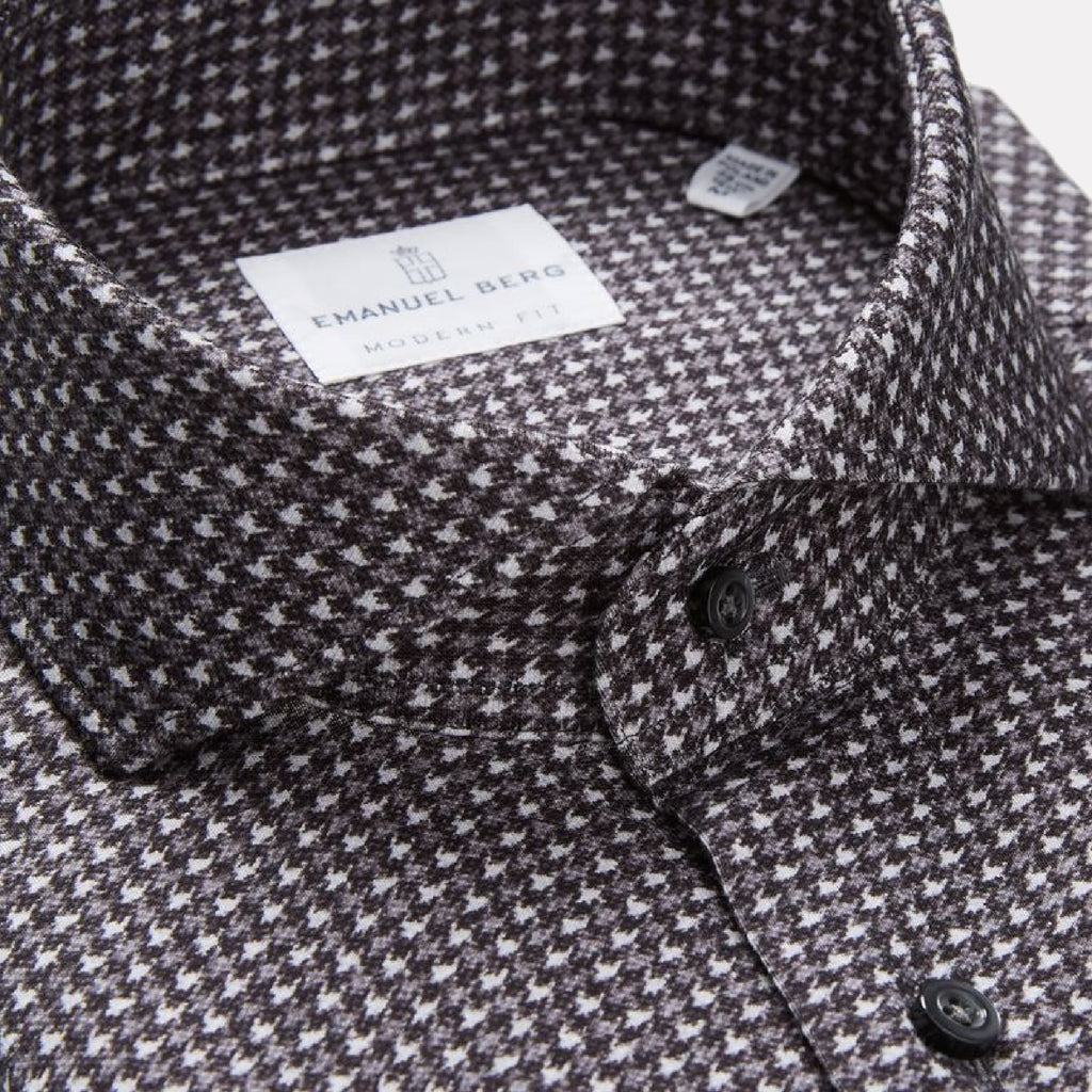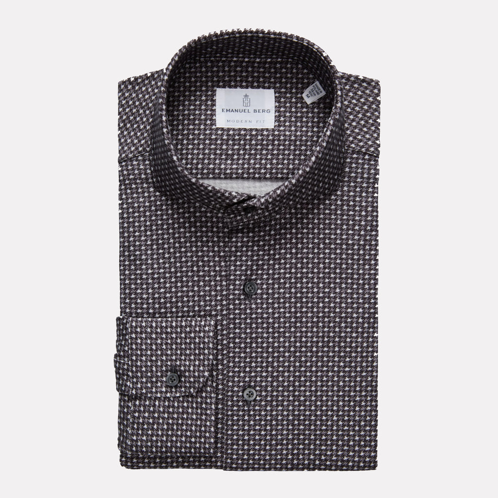 Constructed from exclusive Jersey Knit stretch cotton, this shirt offers unbeatable comfort and fashion without sacrificing movement. Its Italian-made fabric is incredibly elastic, breathable, and maintains a natural feel. With a modern fit and full button closure, this shirt is both sporty and stylish. Plus, its body is 2 cm shorter than traditional slim fits, giving it a more casual look.