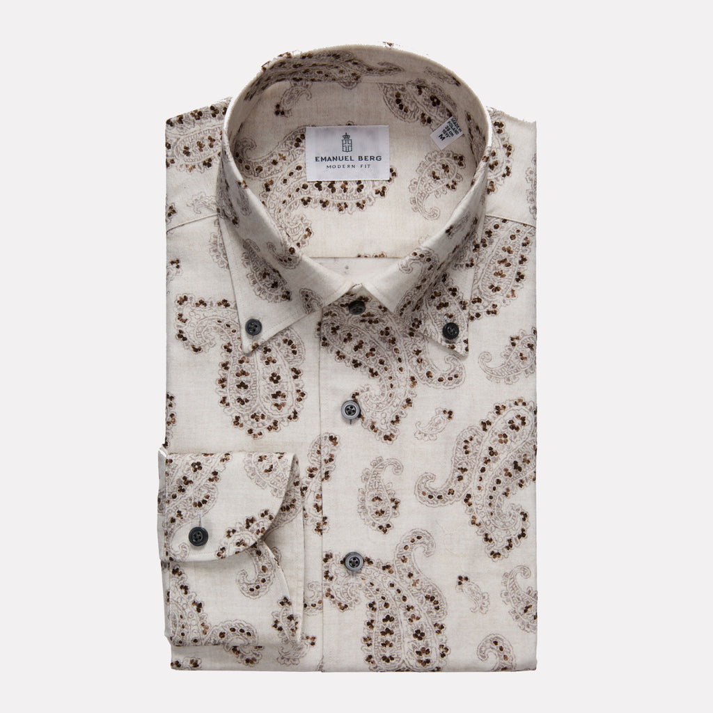 Cotton Luxe Flannel Paisley Casual Sartorial Shirt / Ivory