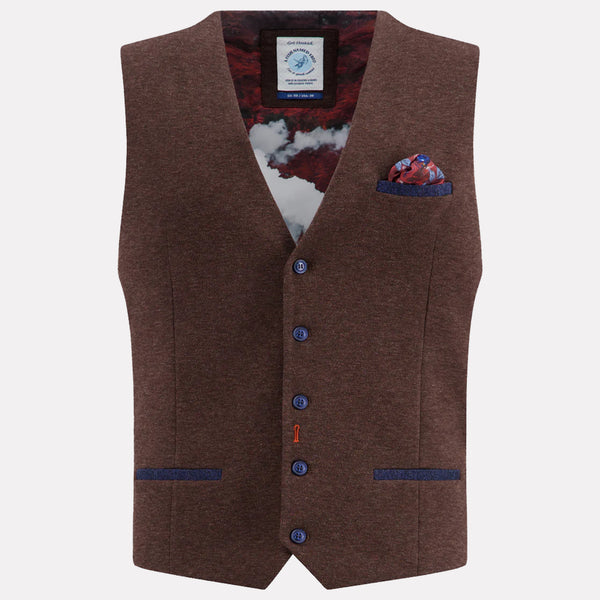 Pique Slim Fit Fashion Waist Coat / Chocolate Brown