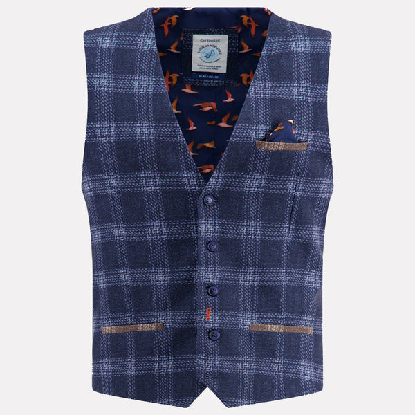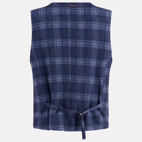 Window Pane Slim Fit Fashion Waist Coat / Blue