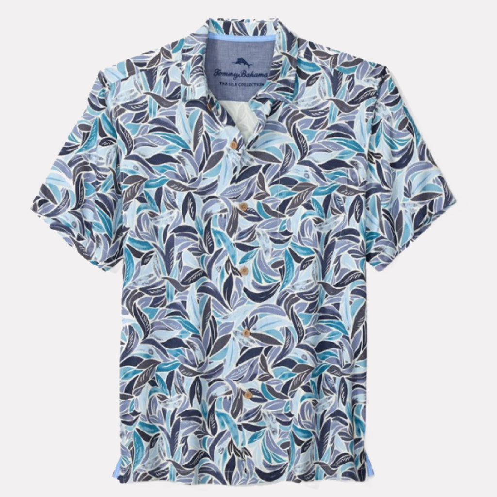 Featuring a vibrant yet versatile array of oceanic hues, this effortless silk camp shirt brings elevated artistic flair to your everyday wardrobe.