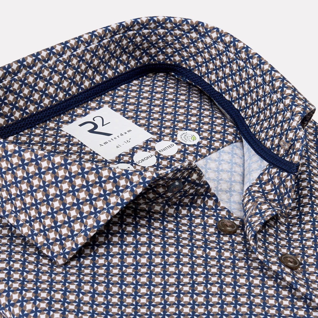 Made from 100% cotton, this shirt provides a comfortable and breathable fit. The widespread collar offers a timeless look, while the classic geometric print adds a unique touch to the design. Perfect for casual outings, this shirt blends style and comfort.