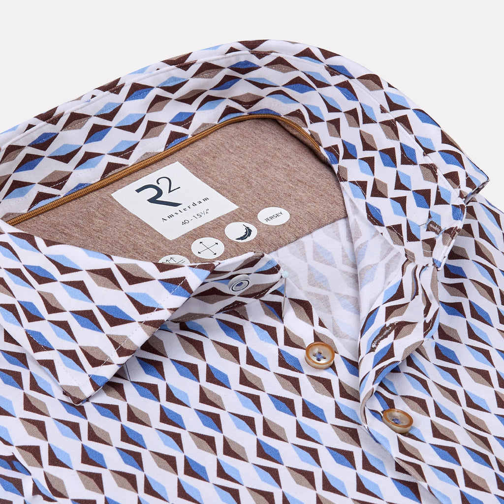 Made from 100% cotton, this shirt provides a comfortable and breathable fit. The widespread collar offers a timeless look, while the classic geometric print adds a unique touch to the design. Perfect for casual outings, this shirt blends style and comfort.