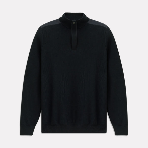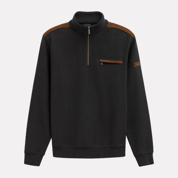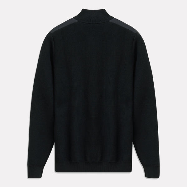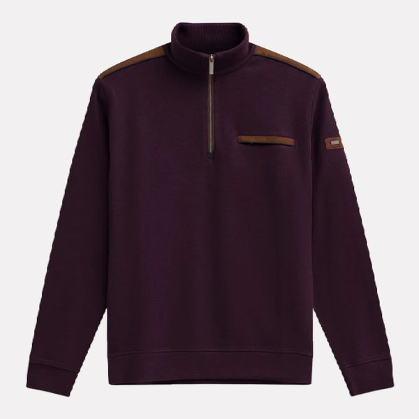 Bugatti QuarterZip Knit w/Suede Shoulder Treatment / Black Berry