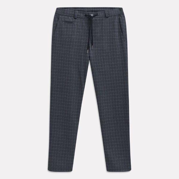 Bugatti "Flex City" Flat Front Drawstring Casual Pant / Dark Grey and Brown Plaid