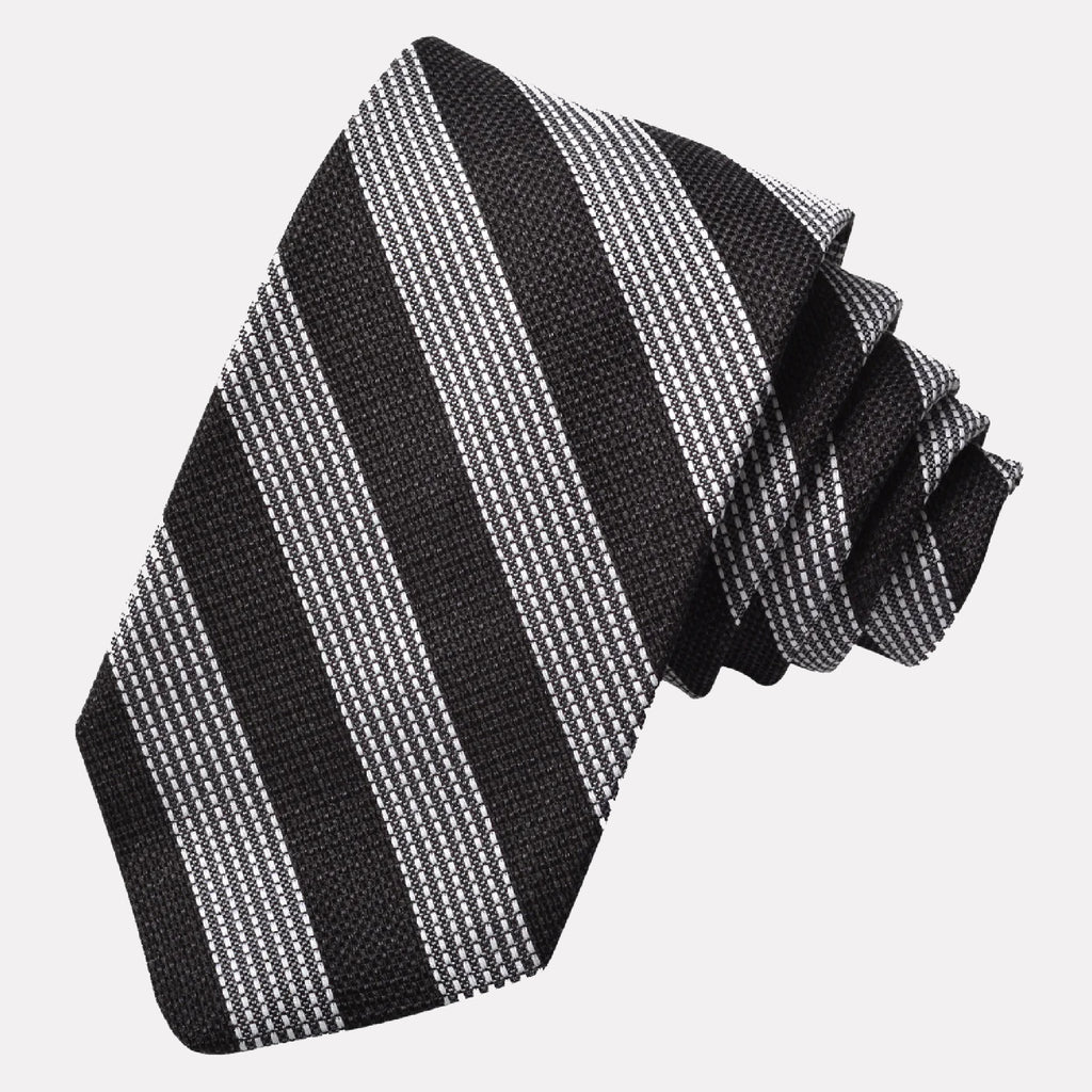 100% Italian Silk, Woven Jacquard Woven Stripe Tie / Black