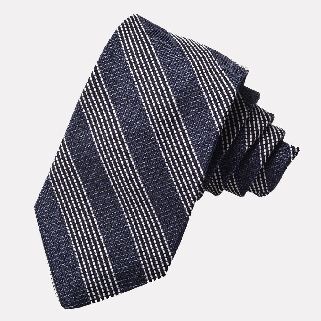 FabricWoven JacquardStyle 3.00" Wide Four-in-handComposition100% Italian SilkProduct No.A40135Colour No.01 DenimHandmade in Canada