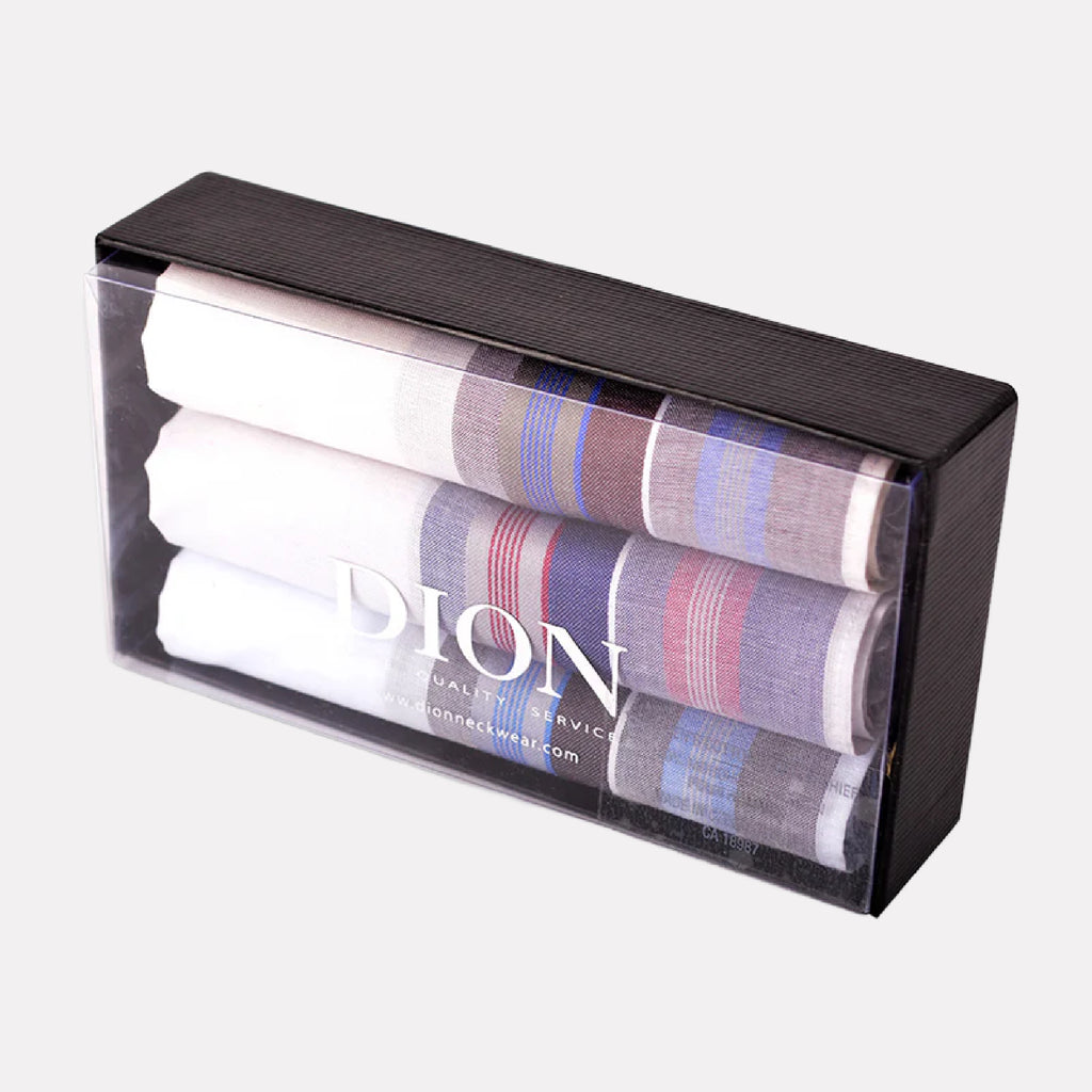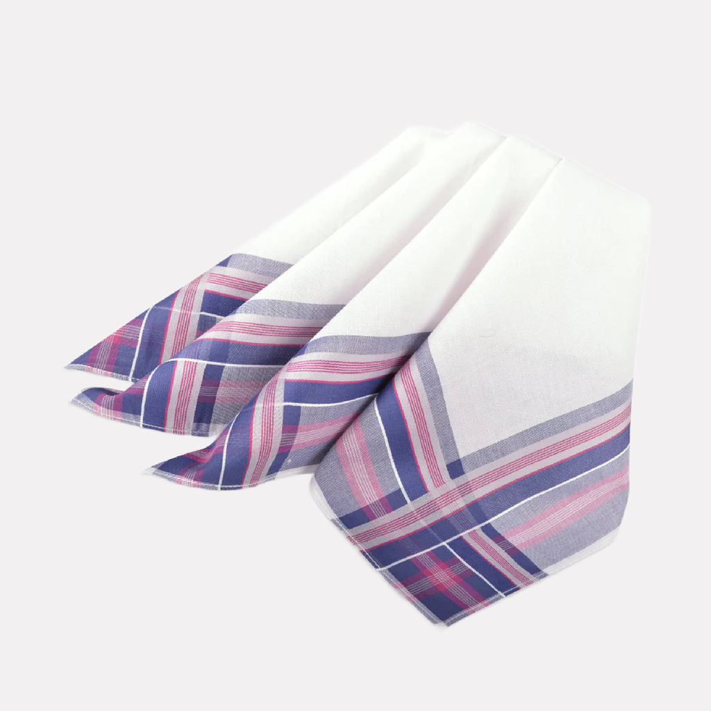 3 Pack of 100% Cotton HandkerchiefsSet of 3, Hand Cut, Hand Rolled, 17" X 17"Composition100% CottonProduct No.DP5003Colour No.White/Denim Blue/Latte/BerryWhite/Mocha/Grey/Cornflower BlueOff-White/Deep Brown/Latte/Cobalt BlueMade In Europe