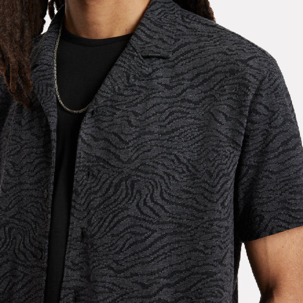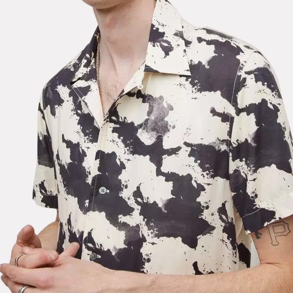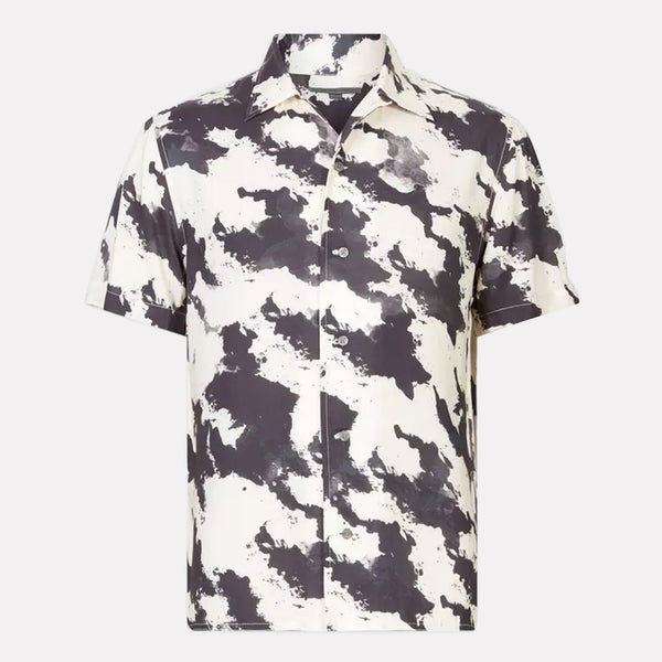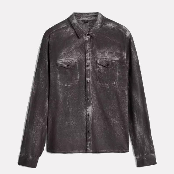 Short Sleeve Mercerized Cotton Marble Wash Shirt / Blue Smoke