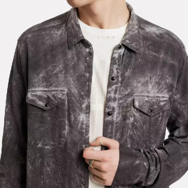 Simo Leather Camp Shirt With Button Closure / Iron Grey