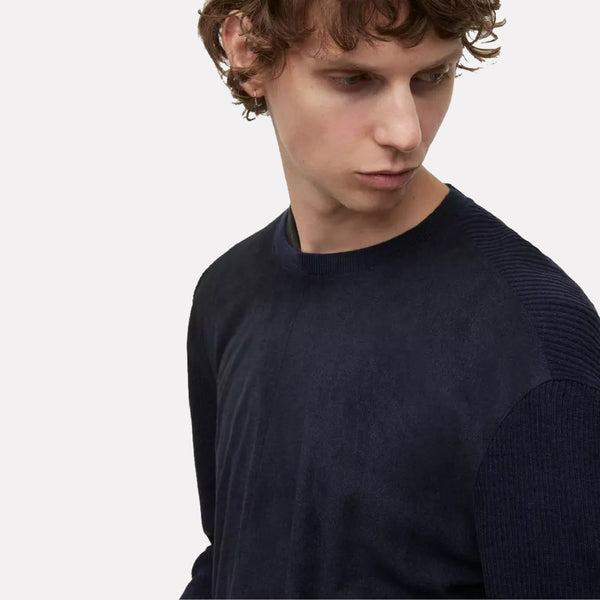 Simo Leather Camp Shirt With Button Closure / Ink Blue