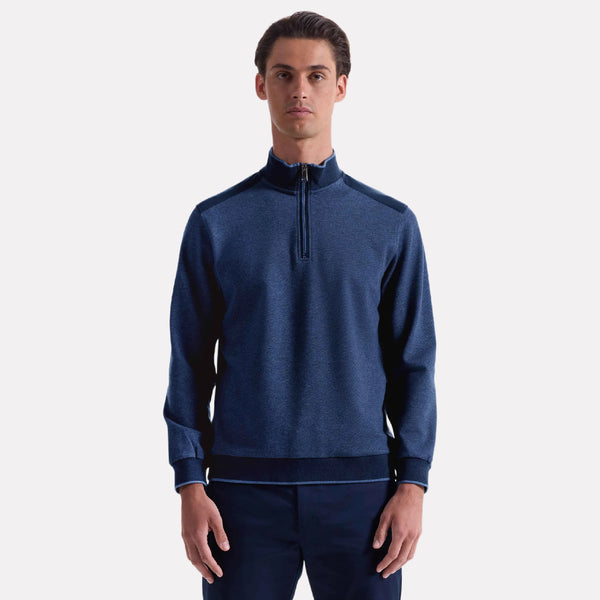 Bugatti QuarterZip Knit w/Suede Shoulder Treatment / Navy