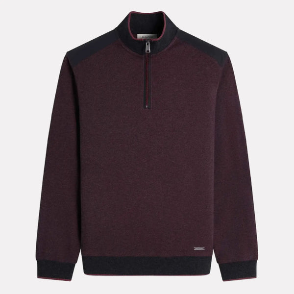 Bugatti QuarterZip Knit w/Suede Shoulder Treatment / Black Berry
