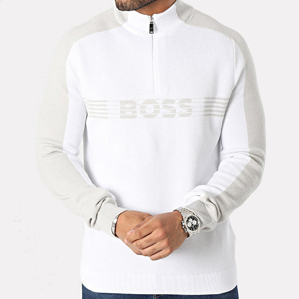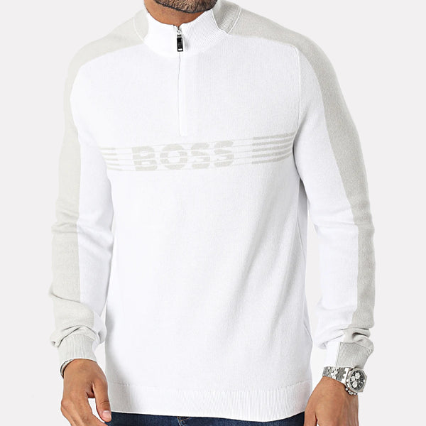 Paul & Shark Virgin Wool Half Zip Sweater w/Velvet Fabric / Oatmeal