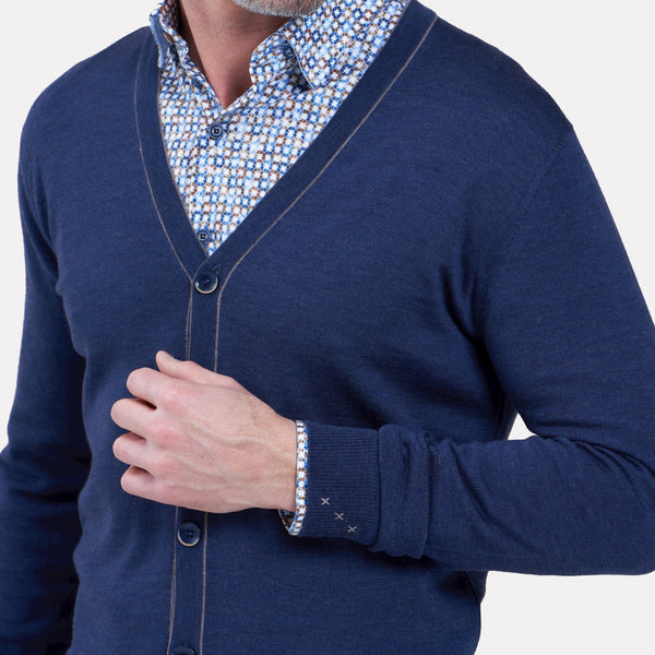 Mock Zip w/Button Insert Italian made Merino Wool / Blue