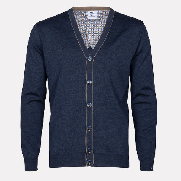 Paul & Shark Wool/Cashmere Full Zip Sweater w/Leather / Mid Blue