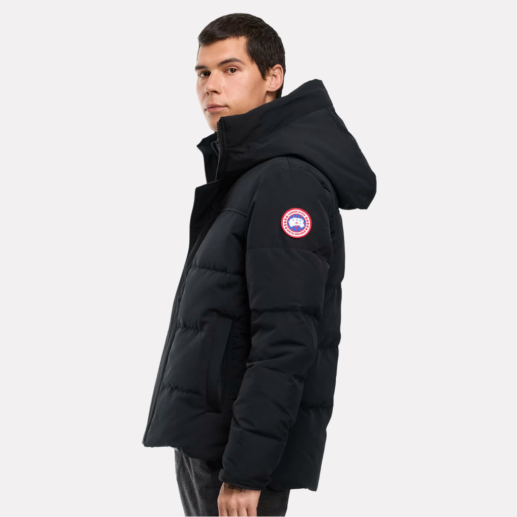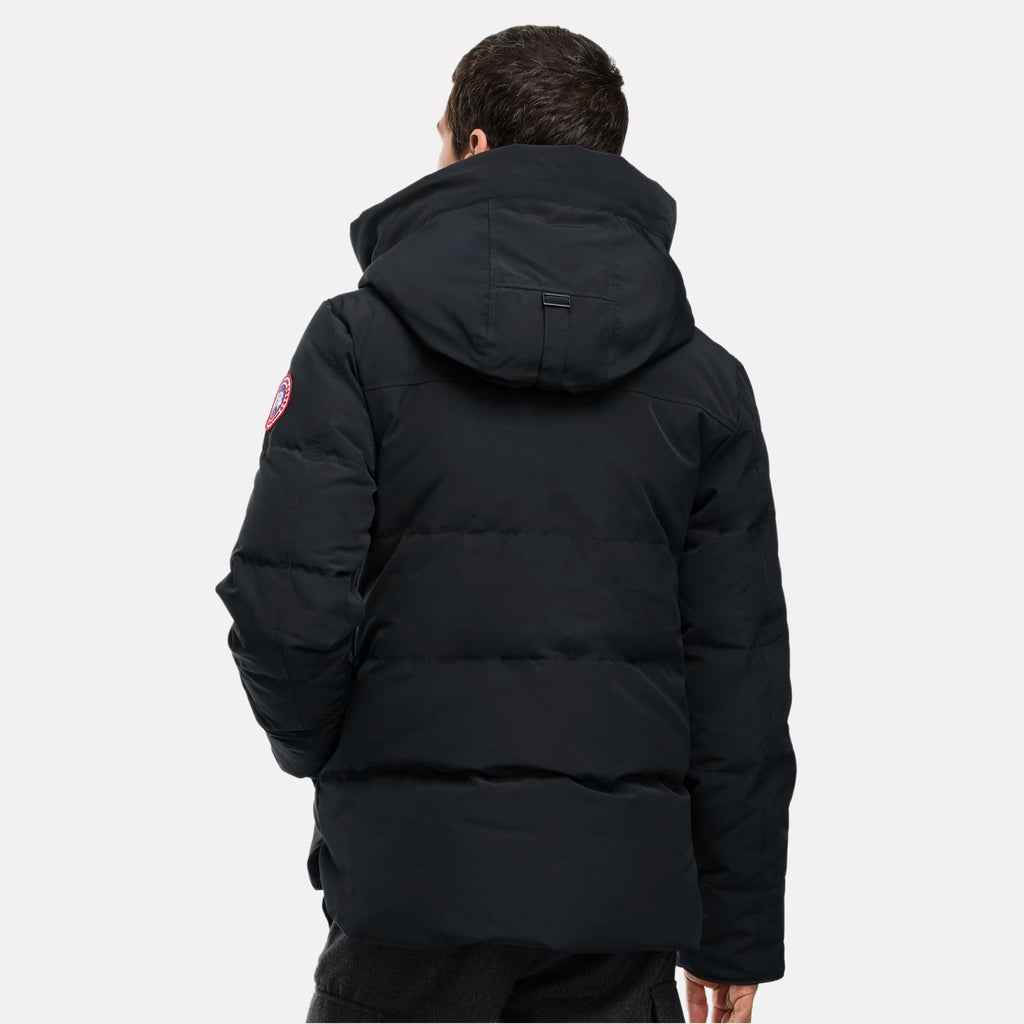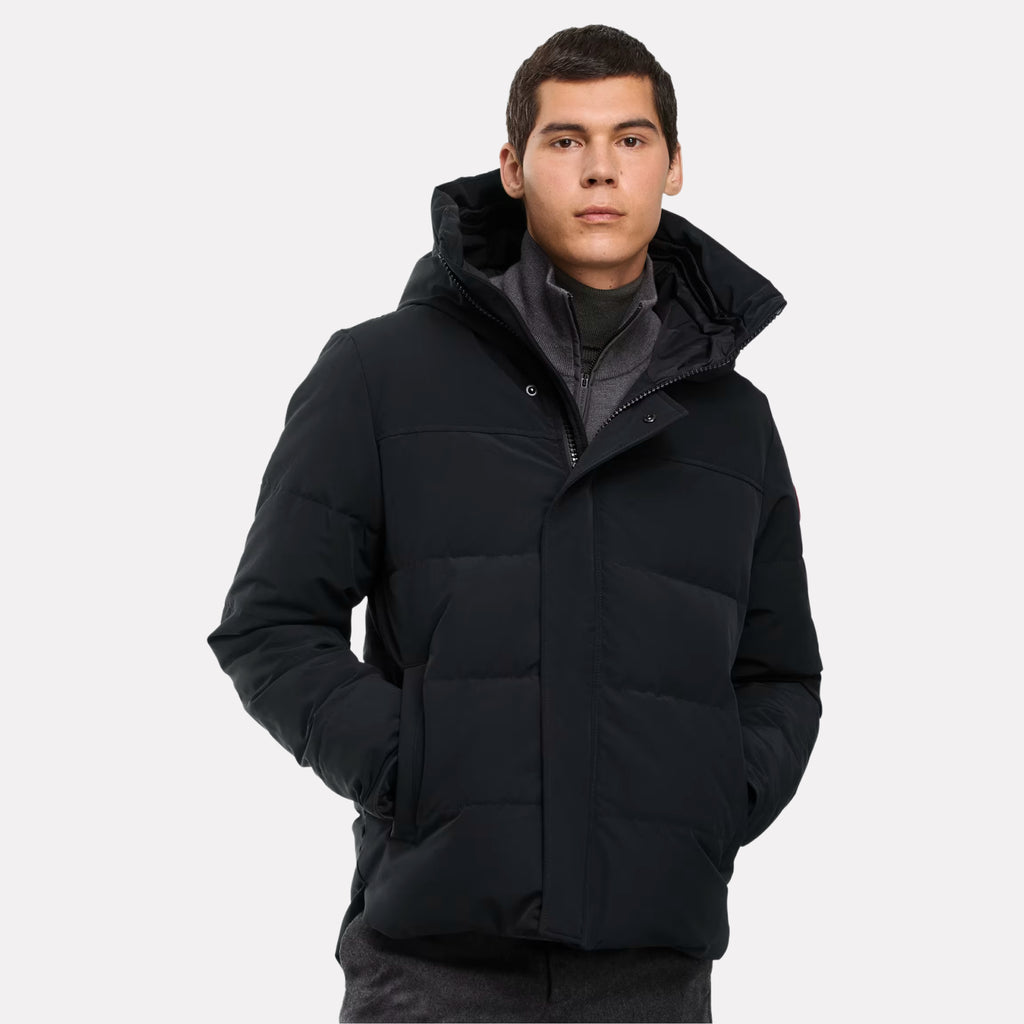 Introducing the Canada Goose™ Men's Classic Disc MacMillan Parka in Black—your new winter MVP. This hip-length powerhouse combines serious warmth with clever design touches: a refined hood, built-in backpack straps for hands-free carrying, and extra interior pockets to stash your essentials. The quilt-through construction and curved hemline deliver both style and substance, keeping you cozy and looking sharp whether you're braving a blizzard or just running errands around town. Weather won't stand a chance against this one.