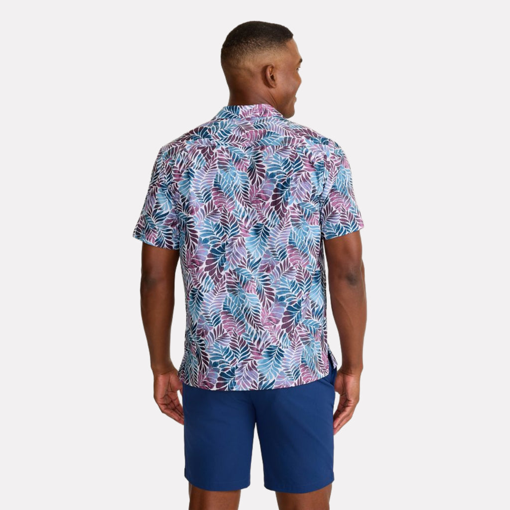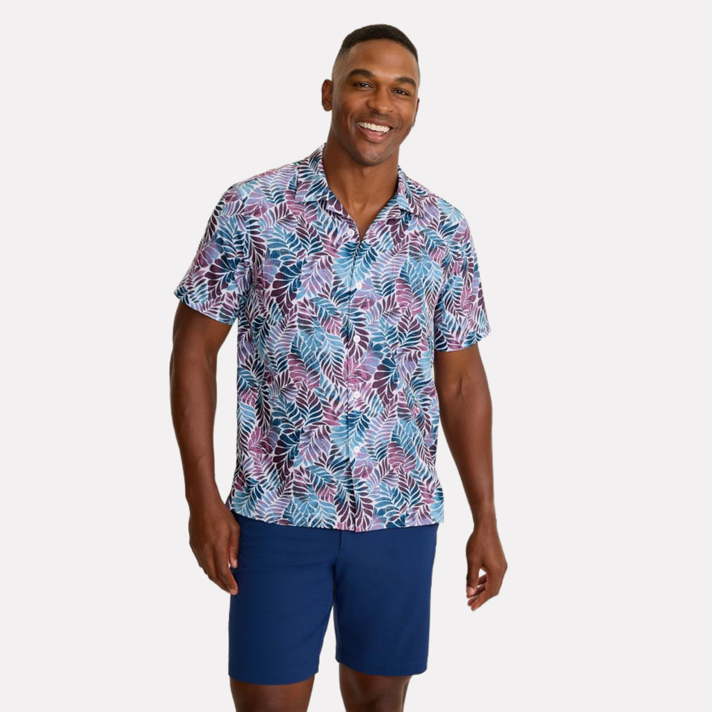 Vibrantly hued monstera leaves boost the mood of this short-sleeve camp shirt, thoughtfully crafted from a blend that offers plenty of stretch and breathability because your comfort always comes first.