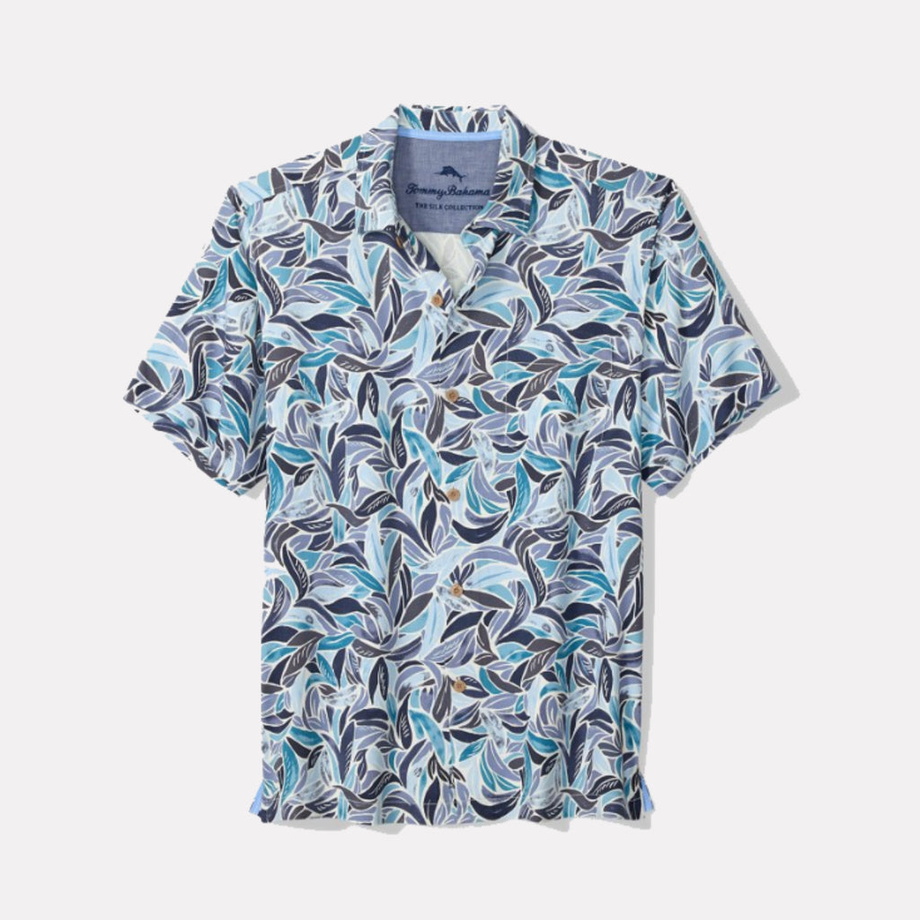 Featuring a vibrant yet versatile array of oceanic hues, this effortless silk camp shirt brings elevated artistic flair to your everyday wardrobe.