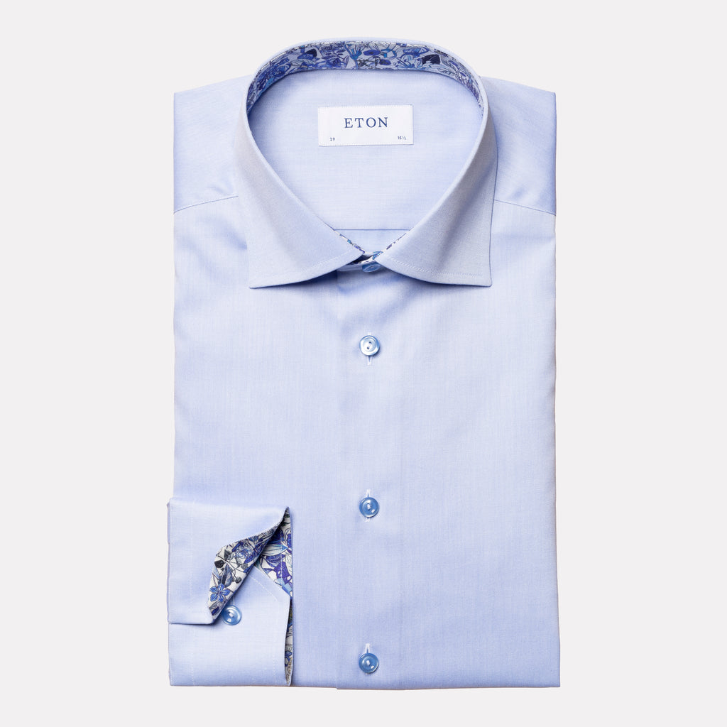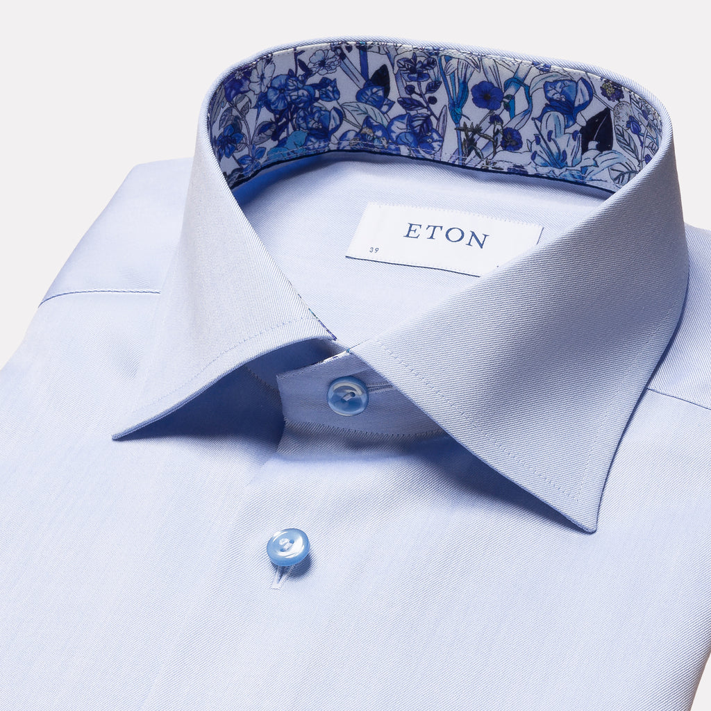 Contemporary Fit Signature Twill with Floral Contrast Details / Light Blue