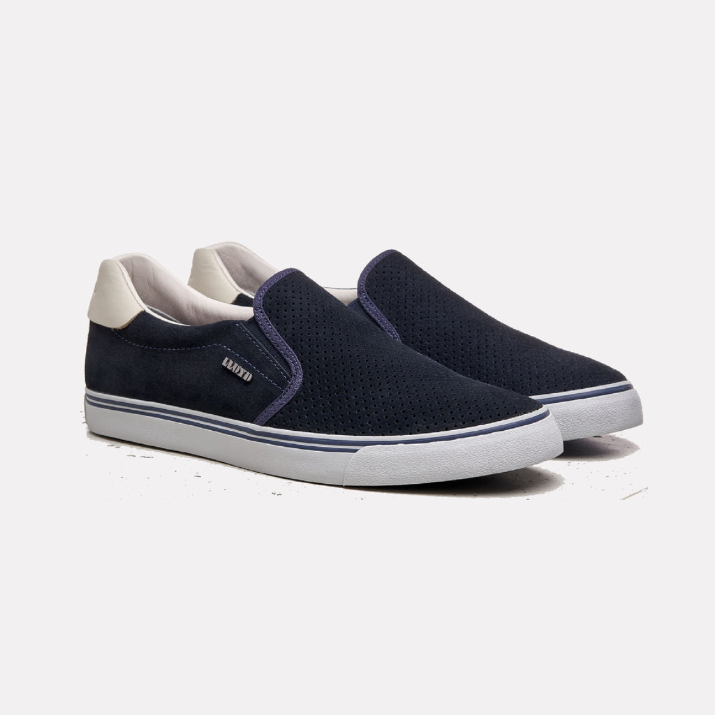 Eldoret Slip-on Loafer in Fine Suede with Variofootbed / Navy-Off White
