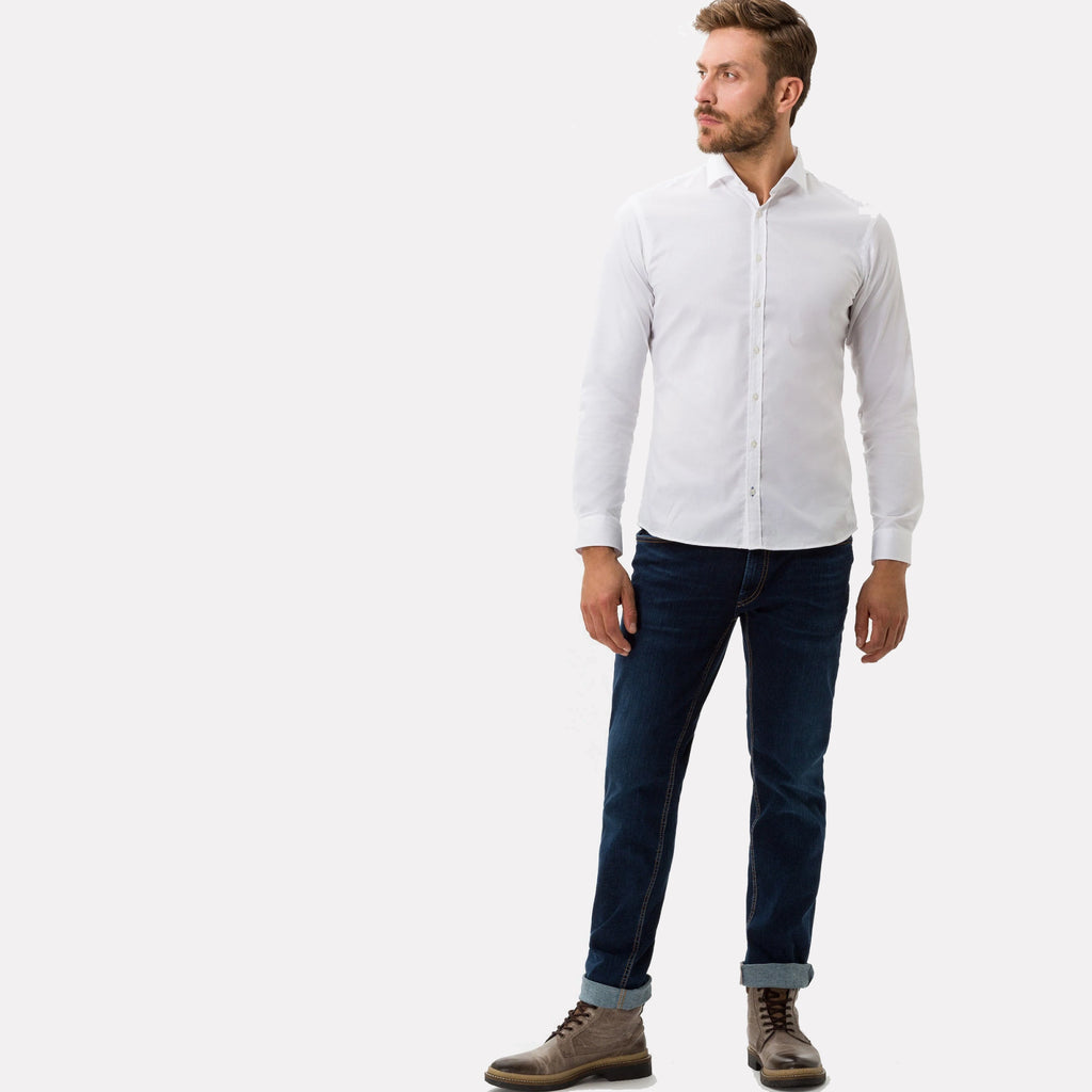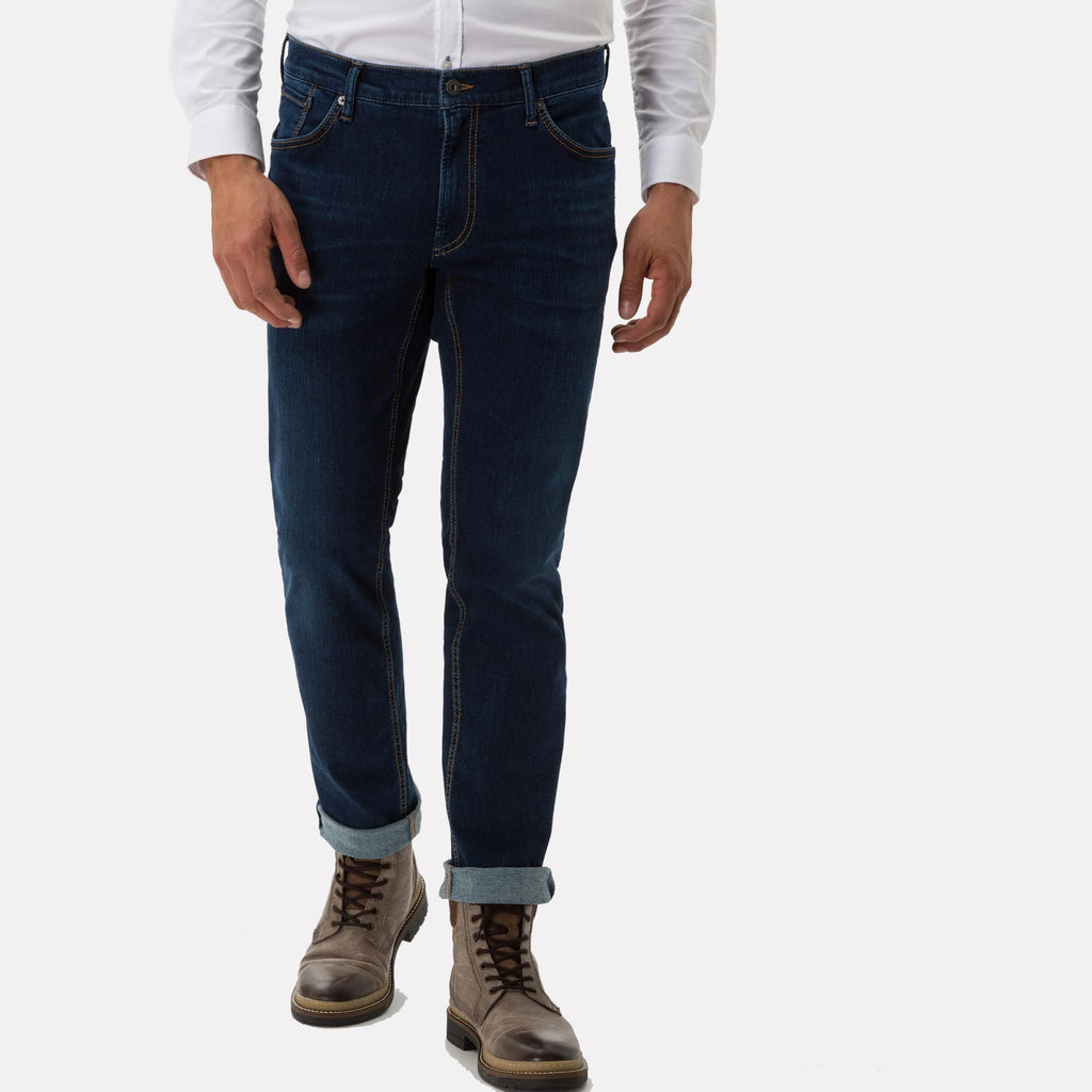 Feel Hi-FLEX. These innovative, Hi-FLEX jeans from Brax combine the authentic look of denim with extra stretch for maximum freedom of movement. These five-pocket jeans expand the Hi-FLEX collection with a fashionable stone wash. Thanks to Brax's cutting-edge DUAL-FX fibers, the Hi-FLEX jeans are resilient and don't stretch out. Meanwhile, the classic ring yarn denim construction gives them a contemporary, distressed look. The result: a rugged, masculine, and super stretchy pair of five-pocket jeans with an ultra-trendy slim fit. Hi-FLEX continues to offer exciting new designs.